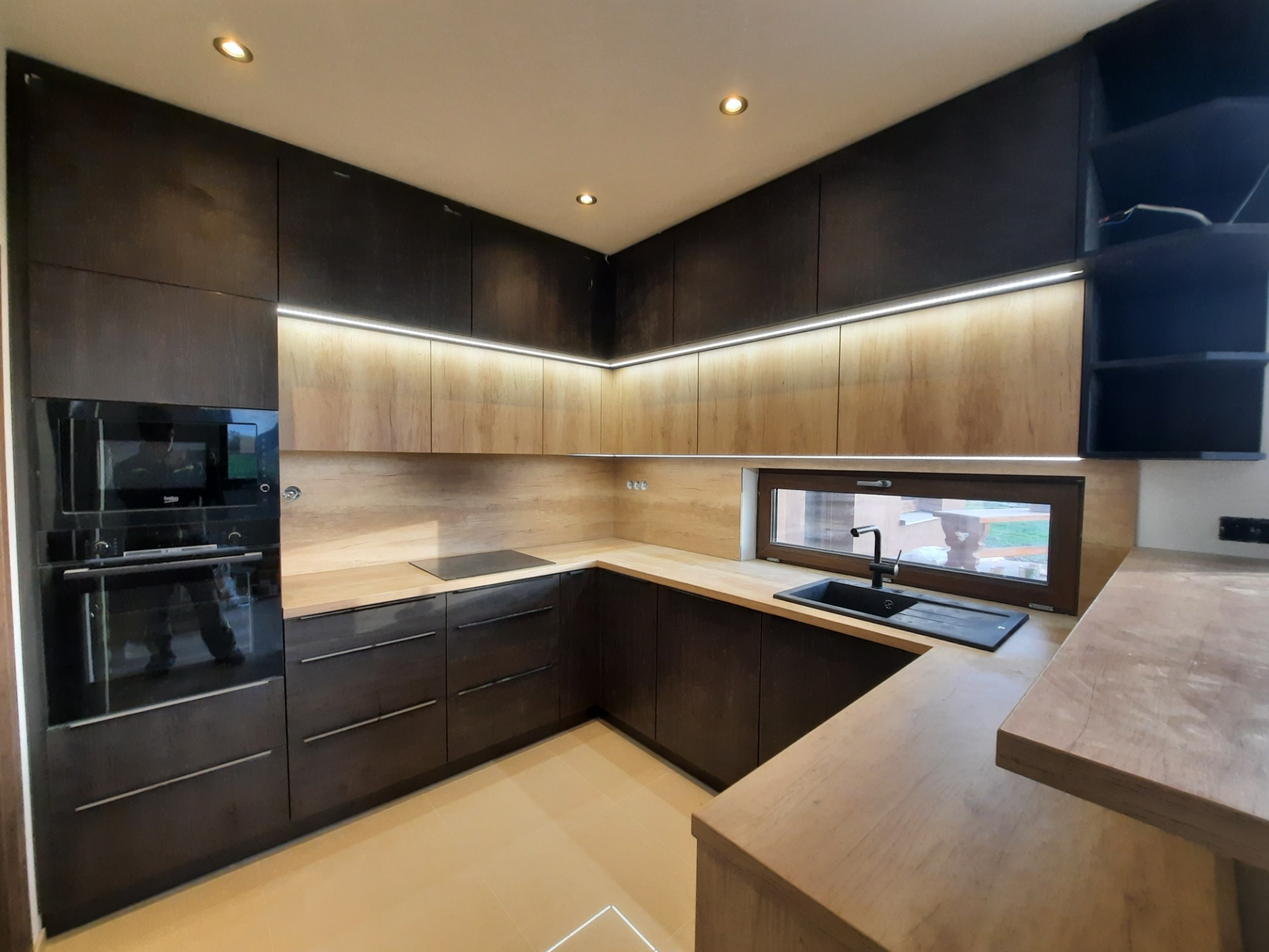 Přemýšlíme o krok dopředu. Moderní vychytávky u nás nejsou luxus za tučný příplatek, ale standard, který dává smysl. Běžně do našich realizací rovnou integrujeme zafrézované LED pásky, chytré podsvícení nebo elegantně vyřešené parkování pro robotický vysavač.